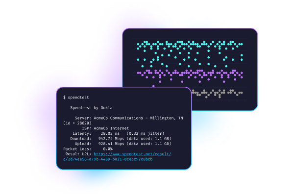 Speedtest CLI นำเทคโนโลยีที่เชื่อถือได้และเครือข่ายเซิร์ฟเวอร์ระดับโลกที่อยู่เบื้องหลัง Speedtest มาสู่บรรทัดคำสั่ง ออกแบบมาสำหรับนักพัฒนาซอฟต์แวร์, ผู้ดูแลระบบ และผู้ที่ชื่นชอบคอมพิวเตอร์ Speedtest CLI เป็นแอปพลิเคชัน Speedtest เนทีฟสำหรับ Linux แอปพลิเคชันแรกที่ได้รับการสนับสนุนโดย Ookla® อย่างเป็นทางการ